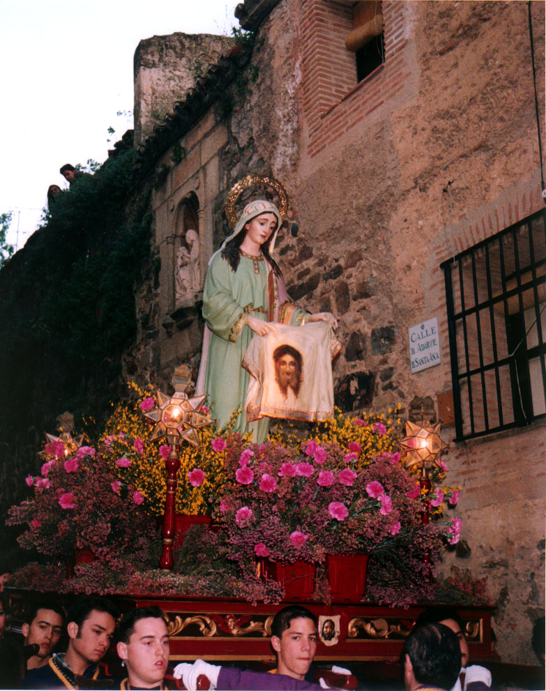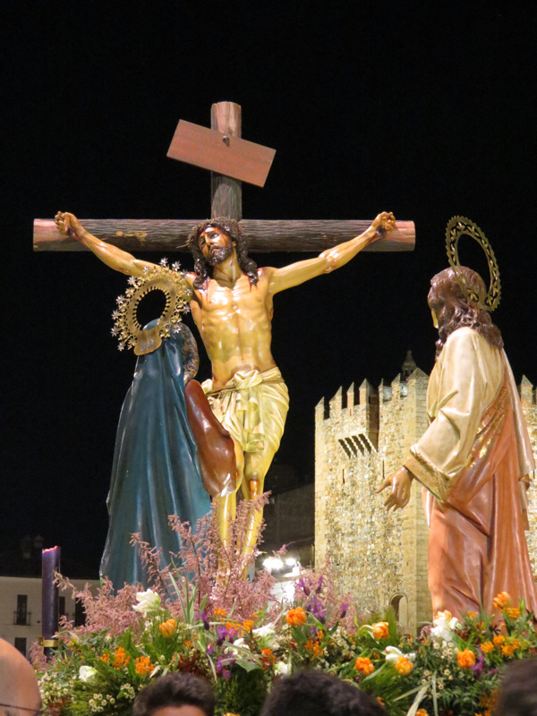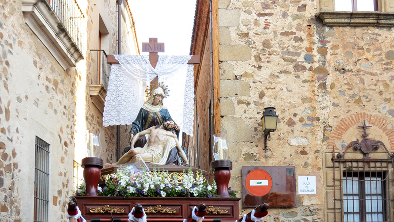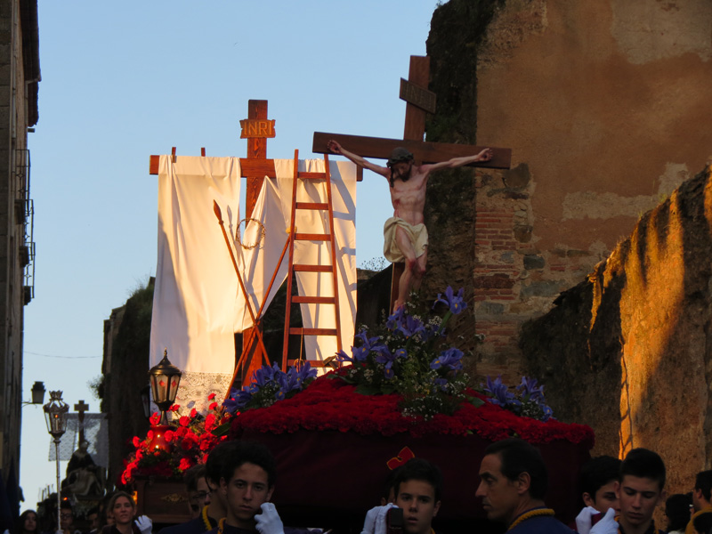 Recorrido: Salida de la Iglesia de Santiago, Camberos, Muñoz Chaves, Plaza del Duque, Gabriel y Galán, Plaza Mayor, Pintores, San Juan, Doctor Durán, Sergio Sánchez, Pizarro, Soledad, Santa Clara, Puerta de Mérida, Adarves de la Puerta de Mérida, del Padre Rosalío, de Santa Ana, de la Estrella, Arco de la Estrella, Santa María, Tiendas, Arco del Socorro, Godoy e Iglesia de Santiago donde se recoge.