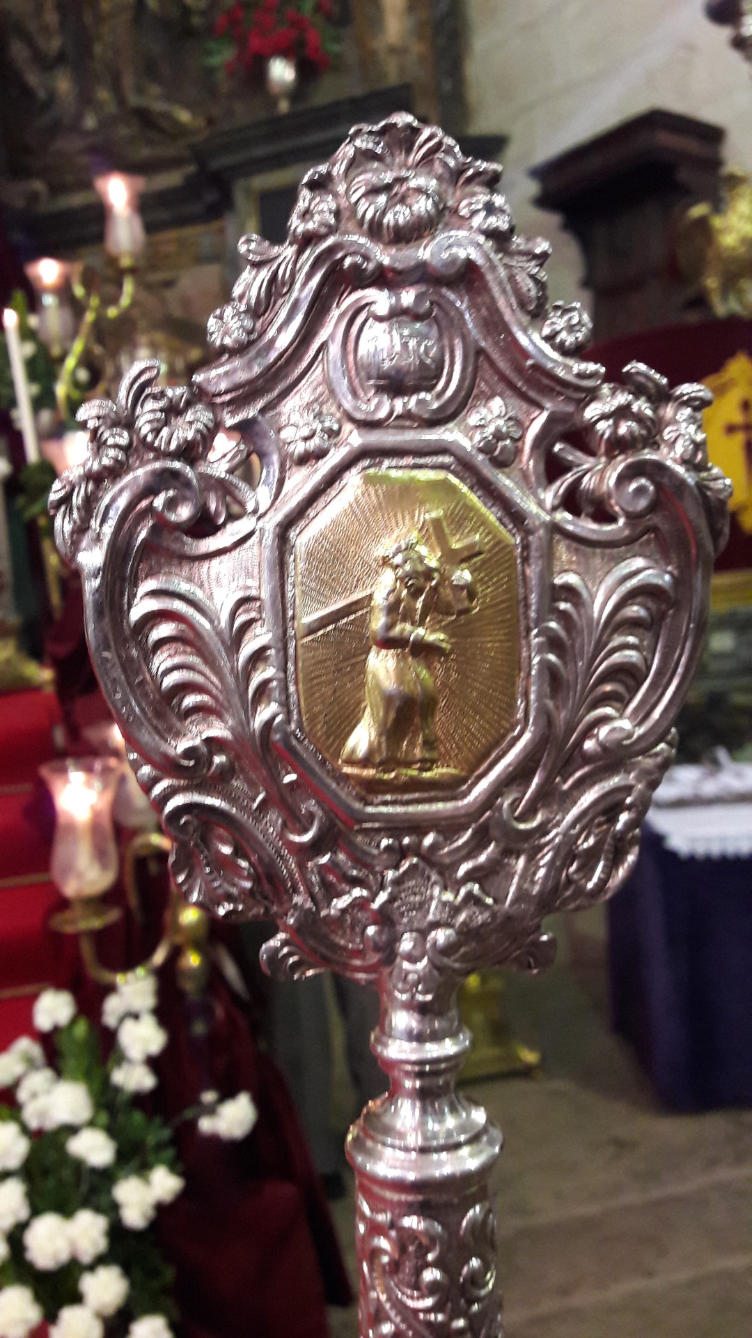 Jesús Nazareno porta en procesión una Cruz de Carey y Plata que la Cofradía encargó al entallador Pedro Barrés (Sevilla) en 1775, que se ocupó del cuerpo de madera de la cruz. La colocación del carey y de la plata aún no se sabe a ciencia cierta a quién correspondió, aunque las últimas investigaciones han hallado en la plata una...